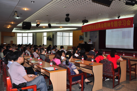 2017年5月26日下午,在甘化大厦17楼会议厅,公司党委举办贯彻全国两会精神专题学习会,由党委书记、工会主席方小潮领学主讲,重点学习贯彻全国两会精神。公司本部、德力光电、生物中心共68人参加了会议。