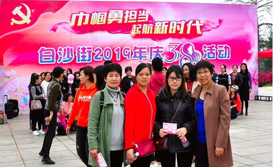 为深入宣传贯彻中国妇女十二大精神,2019年3月6日上午,公司工会组织女工参加白沙街工委会和妇联在东湖公园举办“巾帼勇担当,起航新时代”的白沙街2019年庆3·8活动。