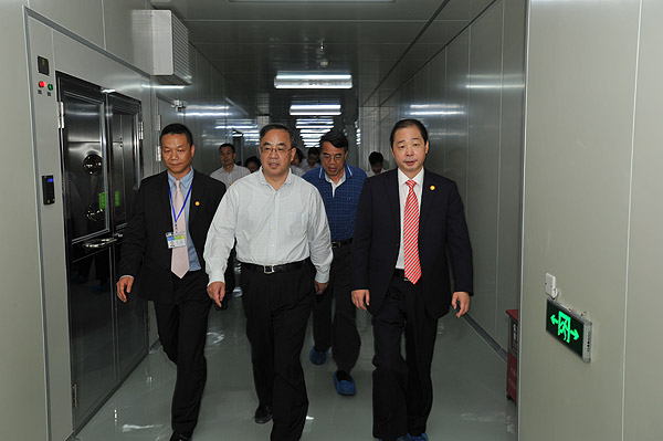之后,在德力西集团董事局主席胡成中和德力光电总经理王非的陪同下,胡春华一行参观了德力光电的外延片、芯片生产车间。