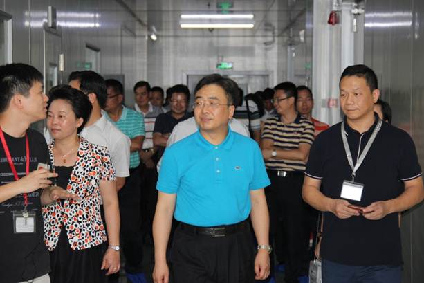 2015年10月26日下午,“台山四大班子”到访德力光电进行调研工作。“台山四大班子”在德力光电总经理王非陪同下,先后参观了外延片、芯片生产车间及展厅,王非总经理进行了详细的讲解。