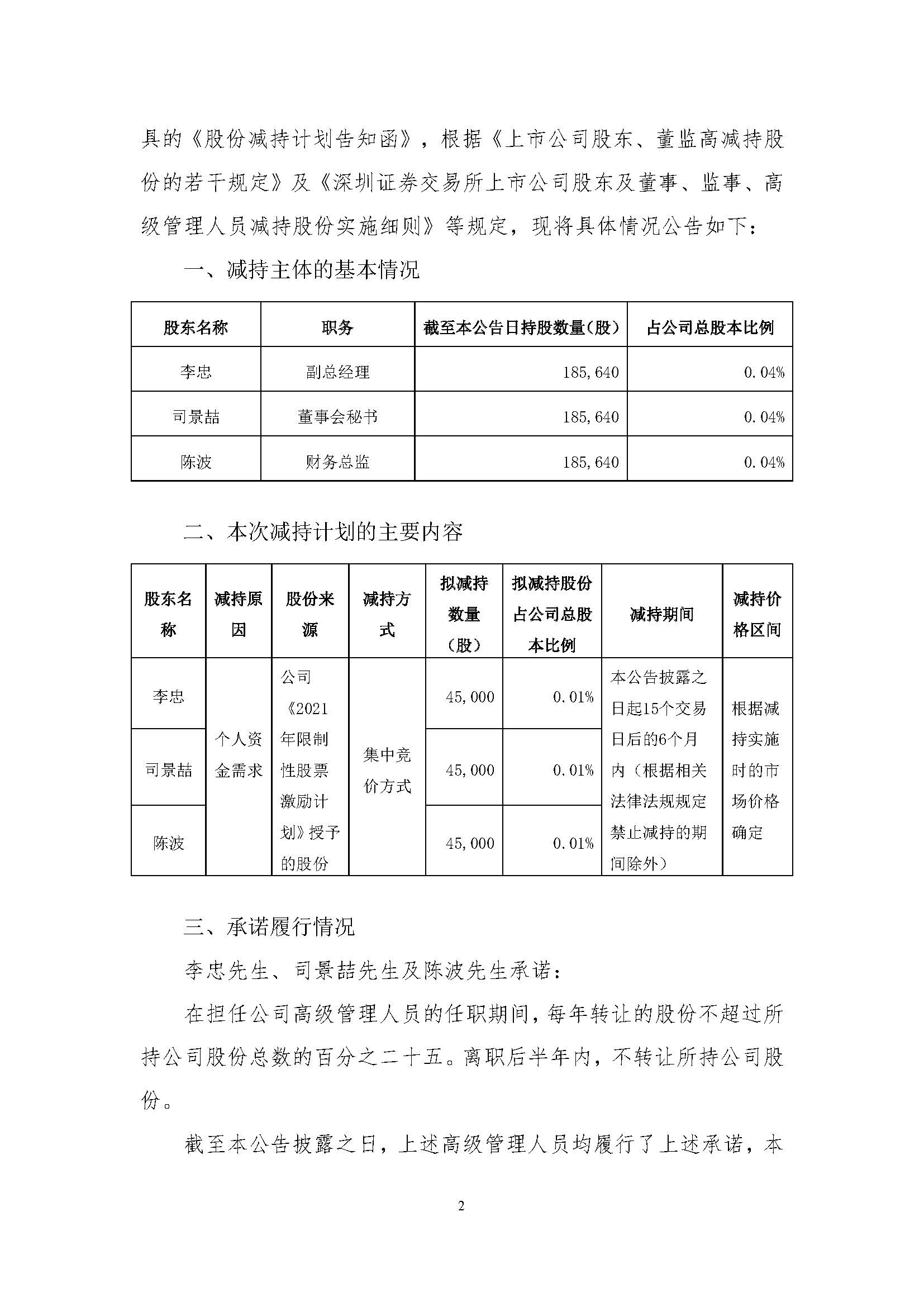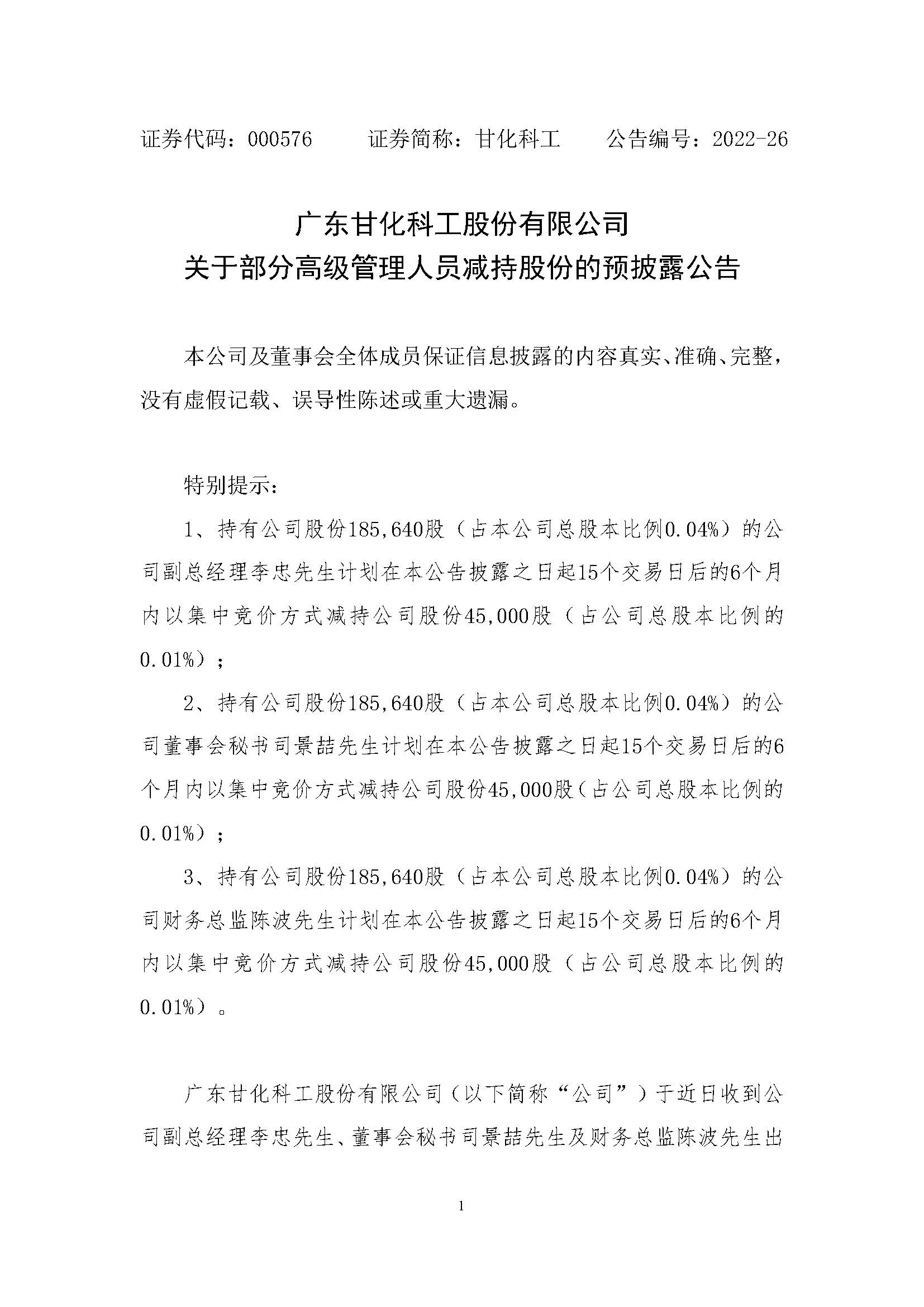 关于部分高级管理人员减持股份的预披露公告